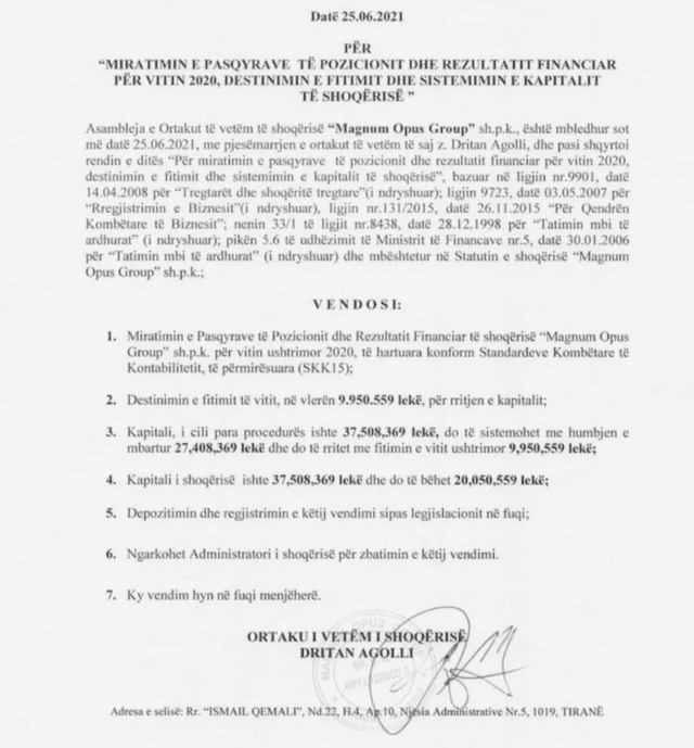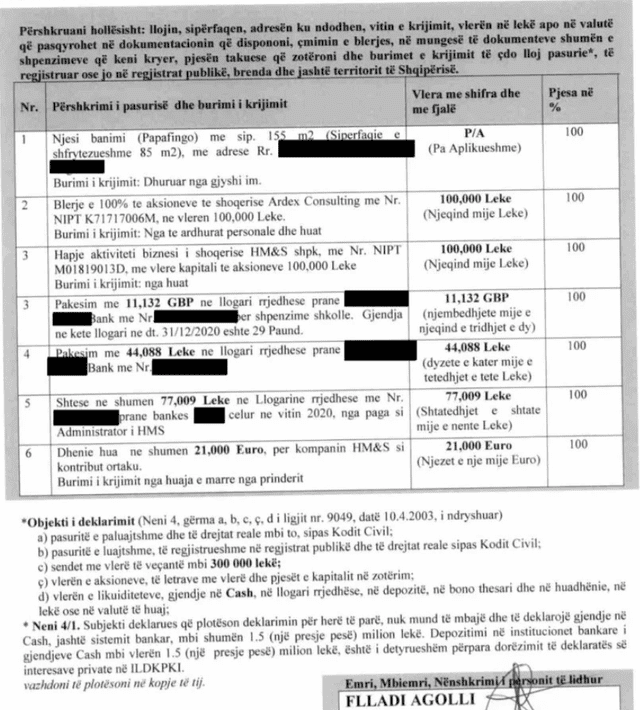 Nga ana e tij, Agolli, për të evituar ekspozimin, e ka kaluar pronën në emrin e kartelit të kompanive që kontrollin bashkë me dalin dhe bashkëshorten.
