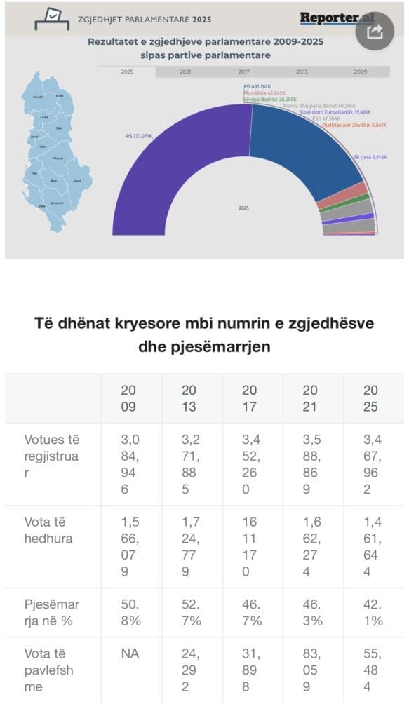 Vota dhe mandate të fituara nga maxhorancat qeverisëse 2009-2025 dhe disbalanca