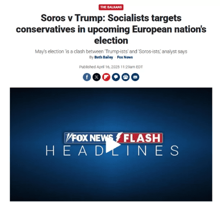 Në analizën e Fox News për zgjedhjet në Shqipëri, autorja Beth Bailey sugjeron se gara politike në Shqipëri është kthyer në një përfaqësim indirekt të përplasjes mes Donald Trump dhe George Soros. Ajo thekson praninë e Chris LaCivitas, strategut të fushatës së Trump, në ekipin e Sali Berishës, ndërsa rikujton lidhjet e njohura mes kryeministrit Edi Rama dhe familjes Soros.